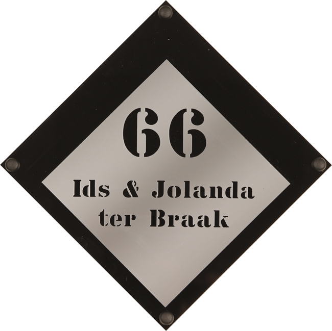 Sjabloonstyle is een unieke serie van het materiaal perspex. Perspex is een stevige kunststofsoort (3 mm dikte), welke uitstekend geschikt is voor gebruik in en rondom uw woning. In de serie sjabloonstyle worden twee kleuren perspex op korte afstand van elkaar gemonteerd. De tekst wordt in de serie sjabloonstyle door de bovenste plaat (de tekstplaat) heen gegraveerd, waardoor de onderliggende plaatkleur (de achterplaat) verschijnt. Uw naam kan hierdoor niet weg slijten of vervagen. Tot slot: de naamborden uit de serie sjabloonstyle zijn standaard voorzien van schroefgaten (tenzij anders vermeld) en worden geleverd met afstandbusjes en afdekdopjes waardoor u het naambord eenvoudig op een korte afstand van de muur kunt monteren. Sjabloonstyle: een unieke, luxe kunststofsoort die tegen een stootje kan!